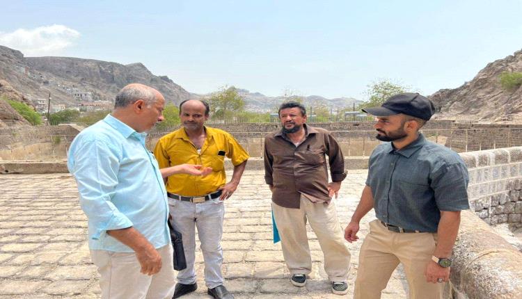 بن جرادي يطلع على حجم الأضرار بصهاريج عدن التاريخي