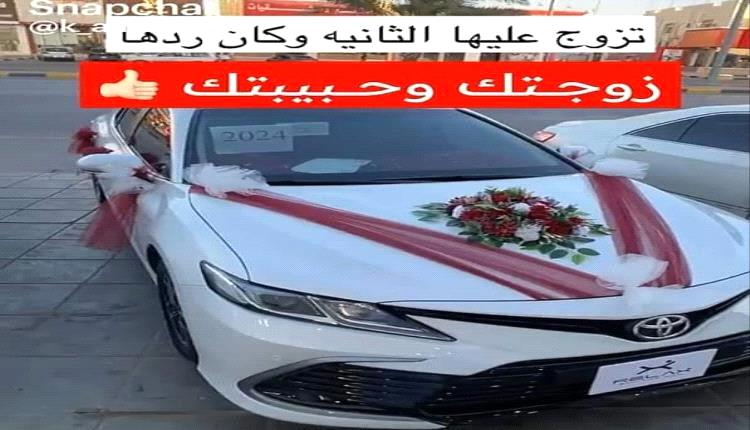 تداول رواد مواقع التواصل الاجتماعي مقطع فيديو، عبر سناب شات، لرجل يتحدث عن زوجة سعودية فاجئت زوجها بسيارة هدية بمناسبة زواجه عليها "الزوجة الثانية".