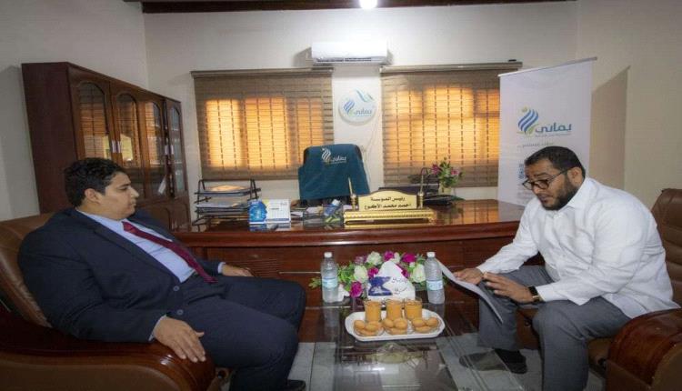 قام الأستاذ عائد صالح بدر بن مهري رئيس جهاز محو الأمية وتعليم الكبار بزيارة إلى مؤسسة يماني للتنمية والأعمال الإنسانية بالمكتب الرئيسي في محافظة عدن , كان في استقباله الأستاذ أحمد محمد الأكوع الرئيس التنفيذي للمؤسسة .