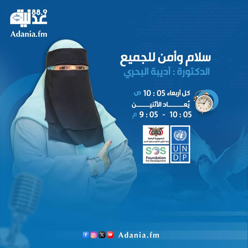 برنامج سلام وأمن للجميع الذي يبث يوم الأربعاء من كل اسبوع من الساعة العاشرة صباحا ويعاد الخميس في الساعة والعاشرة مساء.